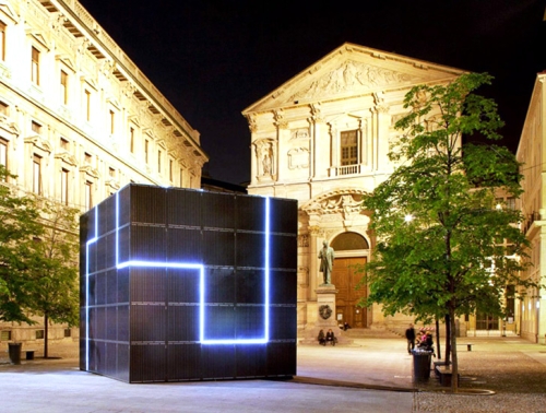Ogromna monolitna kocka e-QBO dizajnera Romoloa Stancoa sakuplja solarnu energiju sa kojom napaja integrisano komunikaciono čvorište smešteno u kocki. Kocka je umotana sa integrisanim fotonaponskim panelima, i upija sunčevu svetlost tokom celog dana kako bi napajala javnu rasvetu, instalacije video-mapiranja, punjače za mobilne telefone i laptopove, kao i internet čvorišta. Projekat je razvijen od strane TRED-a, inovativne italijanske kompanije koja je posvećena spajanju visoke tehnologije i dizajna.
