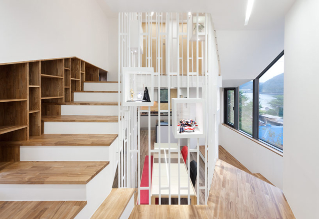 Unutrašanji prostori su smešteni oko ventralnog stepeništa. Ne samo da je ono prostorna nit koja povezuje sobe, već se stepenište može posmatrati kao zasebna soba. Avanturističko igralište za malu decu koja će živeti u kući, kao i za arhitektu.
