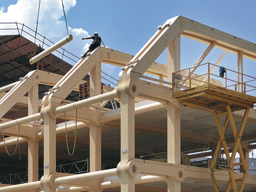 Umesto da se gradi sa letvama i gredicama malih dimenzija, savremena izgradnja drvetom bi bila postignuta korišćenjem tehnološko modernih metoda zasnovanih na super kompresovanim panelima od masovnog drveta – u suštini ogromnim, čvrstim prefabrikovanim elementima.