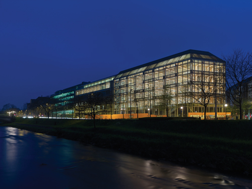 Posebni projektni alati za 3D modelovanje koji nisu u širokoj upotrebi kod drvenih konstrukcija su bili potrebni za ove komponente. Preciznost geometrije i ugradnje je igrala centralnu ulogu u planiranju i proizvodnji strukture. Otprilike 80 odsto građevinskih komponenti, uključujući drvenu konstrukciju, kao i staklenu fasadu, stepenište, unutrašnje staklene pregrade i hlađene plafone je prefabrikovano kako bi se garantovao visok kvalitet i brza montaža.