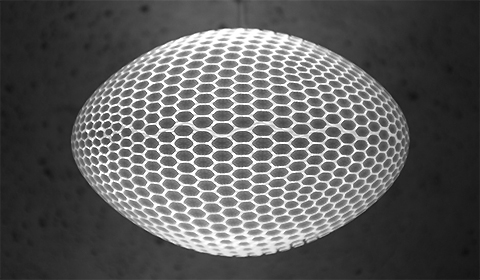 Dizajn je inspirisan strukturama koje se nalaze u prirodi i matematici - kao što su oči ljuskara - i podržava funkcije lakih modula unutra: spoljna struktura je više zatvorena tamo gde LED diode emituju prekomerni sjaj, a više otvorena na vrhu i dnu kako bi obezbedilo što je više svetlosti moguće. Entitet je napravljen od poliamida (beli zrnasti prah) i proizveden sa tehnologijom selektivnog laserskog sinterovanja (SLS).