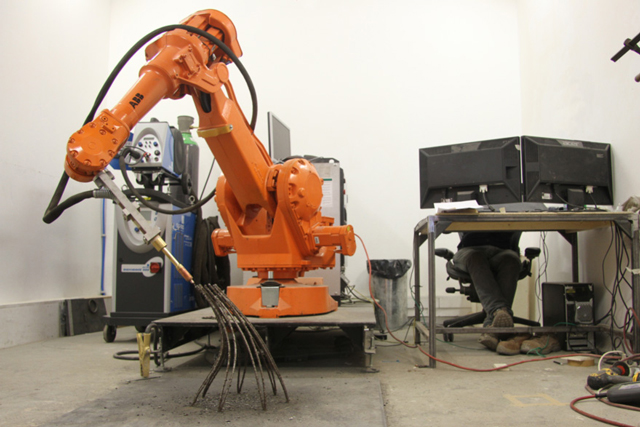 Mx3D-Metal robot je delom štamapač, delom zavarivač. On može da izdvaja zavidne oblike koji prkose gravitaciji korišćenjem različtih metala, uključujući čelik, nerđajući čelik, aluminijum, bronzu ili bakar, bez potrebe za bilo kakvim sredstvima podrške. „Dodavanjem male količine rastopljenog metala u isto vreme, mi smo u stanju da štampamo linije u vazduhu“, objašnjava Larman.