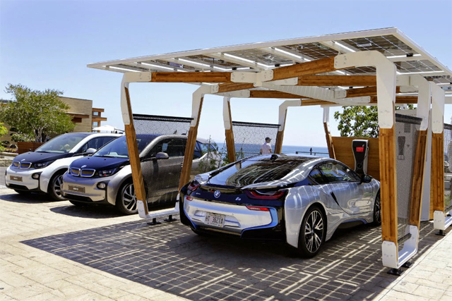 Kompanija DesignworksUSA projektovala je solarni parking za potrebe kompanije BMW i njihovog novog modela i3 i predstojeću seriju i8 električnih vozila. BMW predstavlja koncept solarne garaže za jedna kola kao deo zvaničnog medijskog lansiranja i8 serije u Los Anđelesu, SAD.