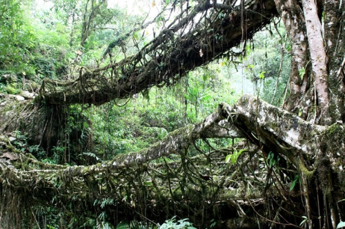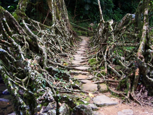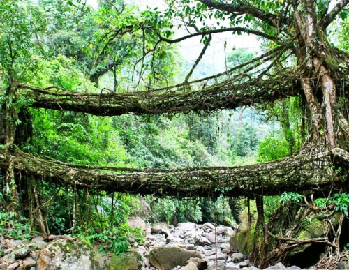 Seljani u državi Meghalaja u Indiji su otkrili jedinstveni građevinsku tehniku koja koristi prednosti prirode u njenom najčistijem obliku - oni gaje žive mostove! Korišćenjem korenja drveta Ficus elastica (gumena smokva), urođenici tkaju složeni sistem živih mostova, od kojih se za neke smatra da su stari preko 500 godina.