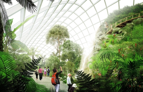 Arhitektonski biro John McAslan + Partners je o svom najnovijem projektu izjavio: „Dizajn je savremeno tumačenje suštinskih karakteristika tropske strukture biljaka, integrišući arhitekturu i pejzaž kako bi se obezbedio holistički pristup lokaciji. Zgrada je bazirana oko mrežne krovne konstrukcije koja ima lagani kontakta sa uređenim pejzažom i posreduje između unutrašnjeg i spoljašnjeg uređenja prirode.“