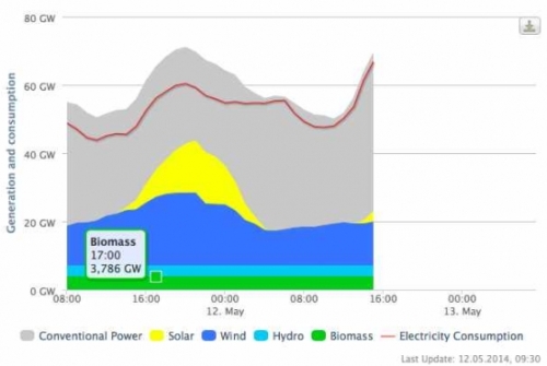 U 2011. godini, Nemačka je dospela u žižu javnosti kada je malo poljoprivredno selu u Bavarskoj proizvelo 321 odsto više energije nego što mu je bilo potrebno. Sada je Nemačka pokazala da je i dalje vodeća država u svetu u pogledu upotrebe obnovljivih izvora energije sa vestima da su obnovljivi izvori proizveli 74% od celokupne energetske potražnje zemlje u sred dana.