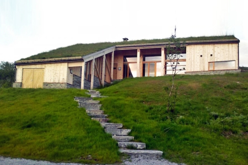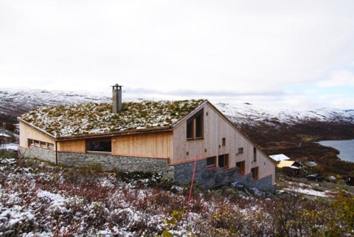 Izgrađena od lokalnog drveta i kamena, ona je završena sa otpornim zelenim krovom koji dodaje notu prečišćavanja vazduha, kao i dodatnu toplotu tokom brutalne nordijske zime.