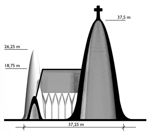 Jednom kada se kalupi izduvaju i uklone iz unutrašnjosti, ljuska od pikrita će ostati da stoji samostalno. Naos crkve će biti napravljen zahvaljujući uklapanjem visećih konopaca i tekstila u pikret.