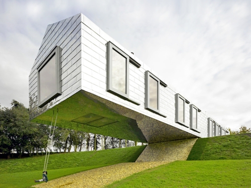 Ovaj hotel definitvno nije za one sa slabim srcem. Projektovan od strane čuvenog holandskog arhitektonskog biroa MVRDV i smešten u selu Sufolk u Velikoj Britaniji, ovaj 30 metara dugački hotel je obložen u sjajnu metalnu fasadu i konzolno obešen preko kose travnate padine.