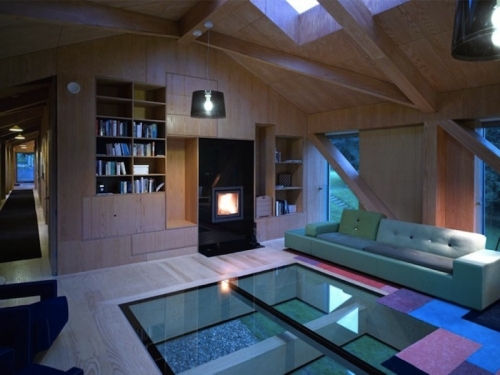 Unutar hotela, posetioce dočekuje udoban enterijer obložen drvetom sa velikom kuhinjom i trepzarijom, koje su praćene sa nizom od četiri dvokrevetne sobe. Konzolna polovina ambara sastoji se od dodatnog stambenog prostora koji je opremljen sa udobnim kaminom. Veliki klizni prostori i svetlarnici uvode obilje prirodne svetlosti u prostor i nude prekrasne poglede na pejzaž.