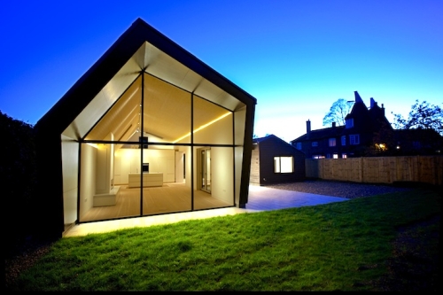 Projektovana za stariji par koji je želeo da provede starost u modernijem i pristupačnijem smeštaju, ova prizemna kuća je izgrađena da bude održiva i laka za održavanje, a da bude dovoljno fleksibilna za velika porodična okupljanja. Kao moderna interpretacija štale kentskog stila, kuća je umotana u crne drvene elemente i ukrašena sa zelenim krovom.