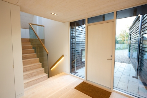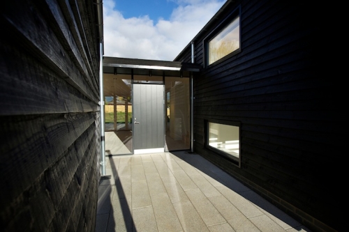 Kuća je projektovana da zadovolji britanske standarde za održive domove i ona ponosno prikazuje svoje korićenje lokalnog drveta unutar i van kuće. Arhitekte su tretirale podove od drveta i izložene krovne grede sa krečom kako bi prosvetlili topli finiš drveta. Krila nalik štali i centralni hol uokviruju intimno dvorište i baštu smeštenu u zadnjem delu kuće.