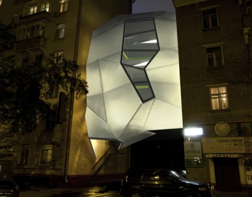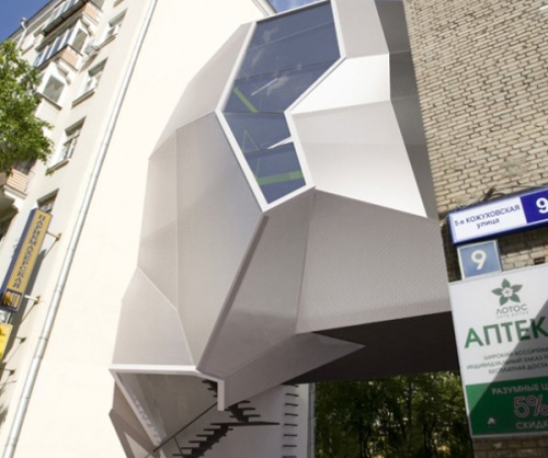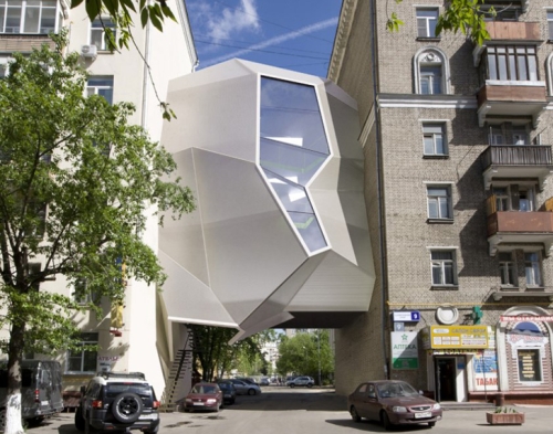 Parazitska kancelarija se uklapa u moskovski novi naglasak ka novom i modernom dizajnu, ali i pruža novi kancelarijski prostor koji ne remeti funkcionisanje grada. Struktura parazitske arhitekture je okačena na visini od jednog sprata između dve susedne zgrade od cigli, ostavljajući netaknutim kolovozni pasaž ispod. Saobraćaj i pešaci se mogu i dalje kretati ispred zgrade do dvorišnog dela iza nje.