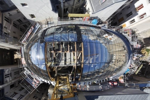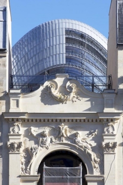 Sama lokacija zgrade u istorijskom bloku je zahtevala posebno obraćanje pažnje na njeno uklapanje u prostor. Ona se nalazi na mestu nekadašnjeg pozorišta iz 19. veka, koje će kasnije postati jedan od prvih bioskopa u Parizu. Dve postojeće zgrade na lokacije su morale da budu srušene kako bi se smestila nova struktura u okviru ograničenja lokacije, ali fasada je zadržana i obnovljena zbog svoje istorijske i umetničke vrednosti.