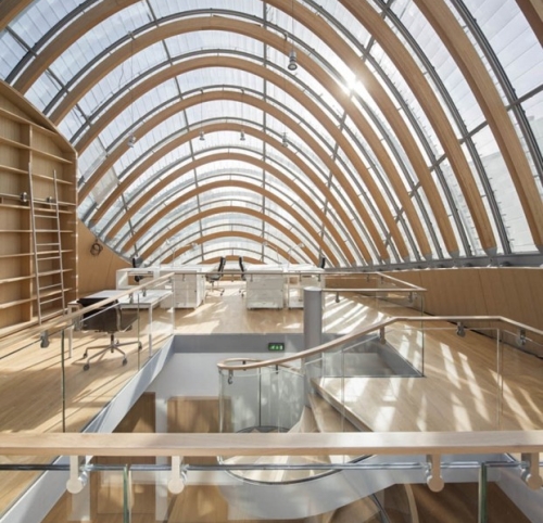 Zakrivljeni oblik nove strukture poboljšava prodor prirodne svetlosti i vazduha u susednim zgradama i povećava količinu okolnog prostora, ostavljajući dovoljno prostora za zadnju baštu. Lučni krov je formiran od stakla kako bi se omogućio prodor svetlosti u kancelarije. Njegov vrh je jedino vidljiv iz daljine, kako štrči iza fasade i diži se iznad okolnih zgrada.