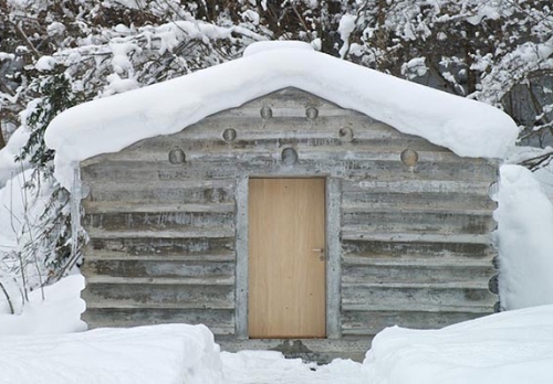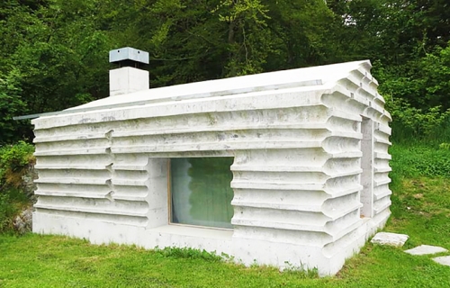 Oni su uzeli debla postojeće brvnare i iskoristili ih kao oplatu za nove betonske zidove, stvarajući negativ od trupaca. Kao rezultat toga, ultra moderna malena kuća čuva razmeru pa čak i utisak o materijalnosti originalne strukture.