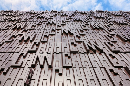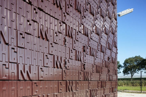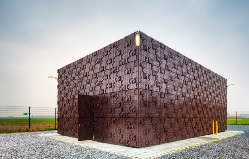 Ova inovativna fasada stanice za prenos gasa ima reljefne panele sa utisnutim slovima H (hidrogen), C (ugljenik) i N (azot) - hemijski sastav prirodnog gasa.