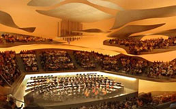 U savremene dvorane većeg kapaciteta spadaju tri projekta koji su trenutno pred, ili u izgradnji: koncertna dvorana Danskog radija, Jean Nouvel-a, i dve "vinograd" dvorane od oko 2.500 mesta: nova kocertna dvorana u Parizu, i dvorana u Hamburgu (fotografija iznad).