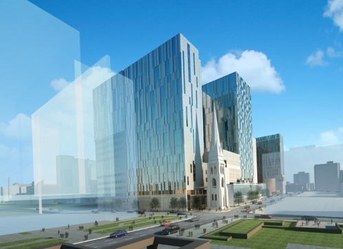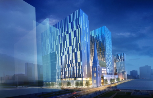 Visoko tehnološke osobine, istorijska arhitekura i osećaj za priodu se neprimetno prepliću u svakom okrilju ovog projekta od 278.715 metara kvadratnih. Stara crkva je očuvana na lokaciji i promenjena joj je svrha kako bi se od nje formirao ulazni deo nalik katedrali u bolnicu na nivou ulice.