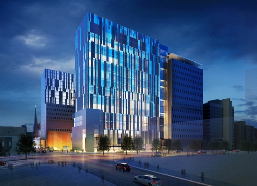 Objekat vredan 2 milijarde dolara i sa kapacitetom od 772 ležaja, teži dobijanju LEED Silver statusa i deluje kao da će biti primer kako treba projektovati zdravstvene objekte. Arhitekte u biro Canon Design su projektovali zgradu sa sjajnim staklenim zidom na eksterijeru koji će pružiti veseli i svetli prostor za pacijente unutra. Staklo odabrano za prozore je trostruko zastakljeno, što pomaže u smanjenju potrošnje energije za 40 odsto više od osnovnih standarda.