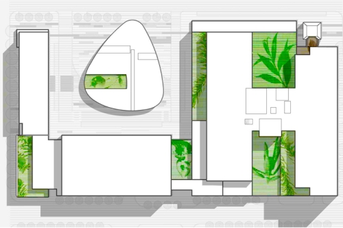 Bašte, projektovane od strane montrealske firme NIPpaysage, će biti zasađene sa tradicionalnim lekovitim biljem - njihova namena nije da bude brano od strane prolaznika, ali će možda samo njihovo prisustvo podržati proces ozdravljenja putem osmoze.