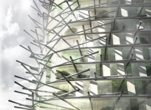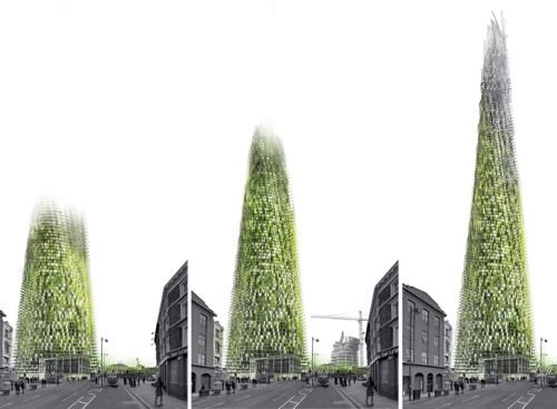 Organski londonski neboder biroa Chartier-Corbasson nastoji da smanji otpad uz minimiziranje troškova izgradnje. Prvo će zgrada biti izgrađena sa raskošnom strukturom po uzoru na skele od bambusa koje se često koriste u Aziji. Prefabrikovani delovi skela će biti instalirani kako napreduje izgradnja, a paneli napravljeni od recikliranog otpada će biti dodati na fasadu tokom vremena.