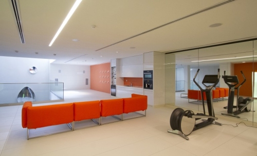 Dva podrumska sprata sadrže teretanu i prostore za rekreaciju, koji uključuju bilijarski sto, dok se prizemlje sastoji od parking prostora i odaja domaćice. Na prvom i drugom spratu se nalaze zajednički porodični prostori kao što je kuhinja, dnevni boravak, soba za televizor, muzička soba i dr. Preostali spratovi smeštaju spavaće sobe, privatna kupatila, kao i dodatnu kuhinju i prostore za boravak.