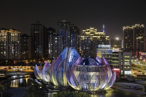 Noću, svetlosni šou pretvara Lotus zgradu u veliku umetničku atrakciju - atrakciju koja je pomogla da zgrada bude jedna od najpopularnijih znamenitosti u Vujinu.