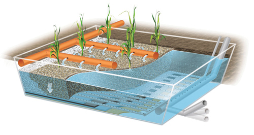 Kao i konvencionalna obrada otpadnih voda, ovi sistemi generalno rade na nekoliko nivoa. Fekalne vode najpre ulaze u primarni zapečaćeni rezervoar, gde bakterije u dobrom sistemu smanjuju otpad na 65-95%. Onda prelaze u močvarnu ćeliju ili slojeviti vrt, prekrivač od šljunka sa posebno biranom vegetacijom na vrhu. Dodatni treći vrt ponekad je projektovan da primi otpadne vode koje zatim mogu da se koriste za irigaciju ili za ispiranje toaleta. Dobro projektovani sistemi ispunjavaju američke (EPA) i evropske zdravstvene standarde.