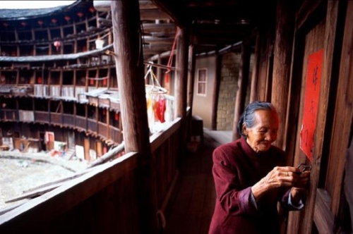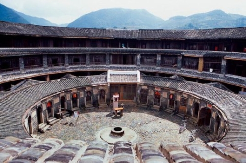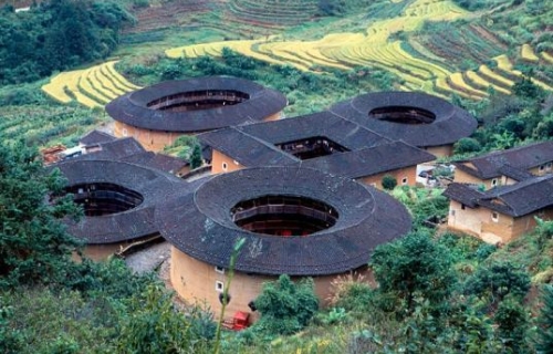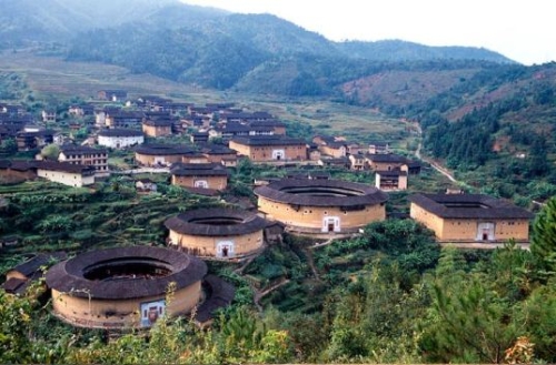 Smeštene u planinama u jugozapadu pokrajine Fuđen, ove zajednice su poznate kao Tulou i one su u suštini tvrđave izgrađene bilo u kvadratnom ili kružnom obliku. Strukture su obično imale samo jedan ulaz, bile su bez prozora u prizemlju, a zgrada je mogla bez problema da izdrži dugotrajnu opsadu jer su bile dobro opremljene sa hranom i unutrašnjim izvorom vode. One su, takođe, često imale svoje sofisticirane kanalizacione sisteme.