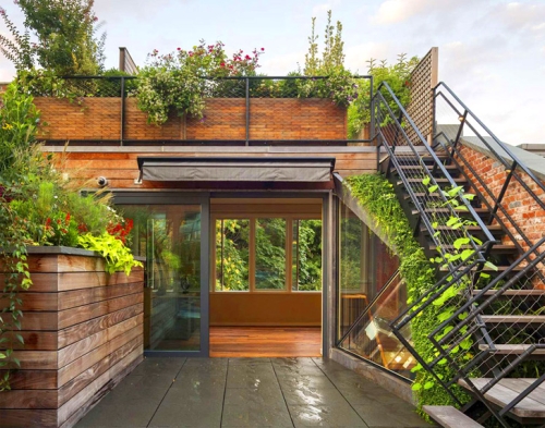 Arhitekta Endrju Franc (Andrew Franz) je bio angažovan da renovira staru gradsku kuću u Vest Vilidžu na Menhetnu, Njujork. Mnogi arhitektonski elementi kuće su vraćeni u svoje prvobitno stanje, a arhitekta Franc je pored toga proširio životni prostor nagore sa dodatim penthausom ukrašenim sa zelenilom.