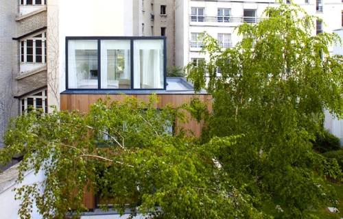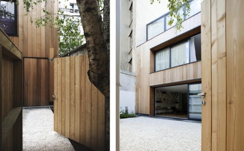 Francuski arhitekta Noel Domingez je projektovao osvežujuće moderan dom u kraju Pariza sa uglavnom heterogenim i bezličnim zgradama. Smeštena u bivšoj bašti jedne gradske kuće, Drvena kuća u Parizu je trospratno kompaktno prebivalište.