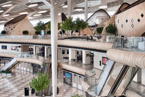 Putnici ulaze u ček-in oblast pune spratne visine tako što prolaze kroz niz iznenađujućih staklenih mehura. Drvene mahune na najvišem nivou smeštaju kafiće, barove, kioske, prodavnice i druge sadržaje.