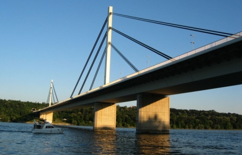 Sve je odrađeno perfektno, što se može smatrati i za odstupanje od samo 13 milimetara, između dva dela konstrukcije, prilikom postavljanja poslednje središnje konstrukcije mosta. Uporedo sa radovima na mostu, tekla je gradnja dva tunela na Trandžamentu i dve auto-petlje na sremskoj strani, Trandžament i Alibegovac. Glavni projektant ovog posla je bio „Kosovo-projekt“ iz Beograda sa inženjerima Milanom Vukojčićem i Radojem Petrovićem, a izvođači beogradski „Partizanski put“ i novosadski „Vojvodina put“.