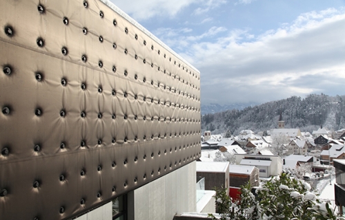 Iako su ovi materijali široko poznati kao kamionske cerade ili vodonepropusni ranci, ili se često mogu videti kod sportskih objekata ili u dizajnu enterijera, njihova upotreba kao fasadnih obloga otpornih na vremenske uslove je nešto sasvim novo. Kompanija Gasser Fassadentechnik iz Sent Galena, Švajcarska, sada nudi gumene obloge i arhitektonske tapiserija kao održive fasadne materijale.