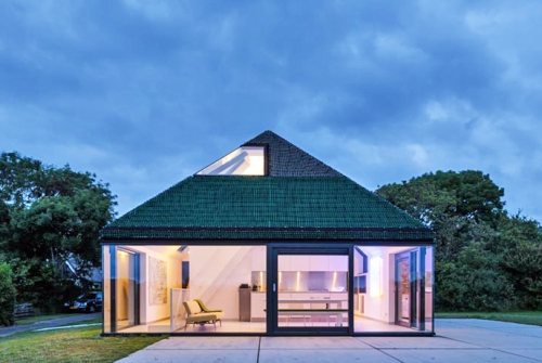 Ova predivna vikendica na holandskom ostrvu Teksel je projektovana od strane biroa Benthem Crouwel Architects da podseti na tradicionalne šupe koje se mogu videti širom ostrva. Ove tradicionalne šupe ili „schapenboeten“ karakteriše zabatni krov i koriste se za skladištenje sena i alata koje se koriste na farmama. Moderni dom je odeven u staklo, što pruža njegovim stanarima panoramski pogled na rustični pejzaž koji spaja nebo i more.