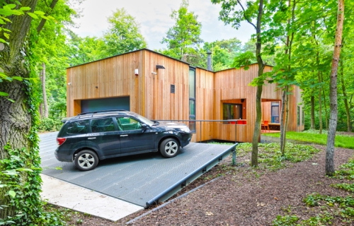 Lokacija je odavno ispitana od strane vlasti i smatrana je za nepogodnom za gradnju, ali je biro bio u stanju da obezbedi dozvolu zahvaljujući svom inovativnom pristupu. Jasno podeljene noćne i dnevne zone su presečene sa tri unutrašnja dvorišta koji stvaraju vizuelni kontinuitet i omogućavaju rast drveća oko kuće.
