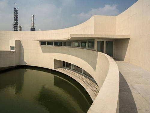 Iako obično ne bismo promovisali hemijsko postrojenje, ova zgrada na vodi se može pohvaliti sa poetskom lepotom i dinamičnom formom koji vrlo tipične odlike Sizaovog rada kojeg toliko volimo. Smešteno na ostrvu u sred veštačkog jezera, plutajuće hemijsko postrojenje prati blagi luk od 300 metara i može se pohvaliti sa nekoliko zelenih akreditiva vrednih pažnje.
