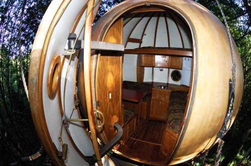 Koliko biste bili oduševljeni kada bismo vam rekli da možete da posedujete sopstvenu viseću kućicu na drvetu? Inspirisan prirodnim svetom oko sebe, kanadski dizajner Tom Čadlej je stvorio divne drvene eko-sfere, koje mogu biti postavljene na tlu ili obežene o drveće uz pomoć kablova i mreža. Eko-sfere možete kupiti ili iznajmiti u Tomovom ekološkom odmaralištu u Kanadi, i one nude novi kapriciozan način da doživite prirodu.