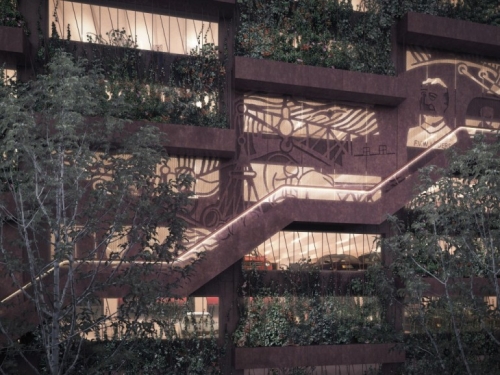 Dok većina gradskih višespratnih parking garaža ima tendenciju da poseduje taj mirisi i izrazito zlokobnu „bićete opljačkani“ atmosferu, arhitektonski biro JAJA navodi Centar Pompidu u Parizu kao inspiraciju, a predviđa stepenište garaže kao atraktivnu opciju koja će takođe ponuditi poglede na okolinu.
