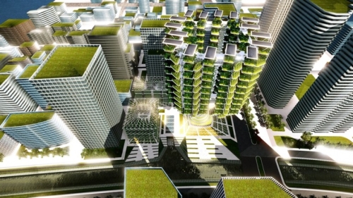 Dva problema koja su izazvana povećanjem prenaseljenosti u gradovima su kako koristiti prostor na produktivniji način i kako nahraniti svakoga. Novi dizajn koncept sugeriše sredstva za rešavanje ova ova problema. U tom maniri je arhitektonski biro Aprilli Design Studio uradio projekat Urbane nebeske farme (Urban Skyfarm) u obliku nebodera koji obezbeđuje dovoljno prostora za stanovanje uz obilje prostora za ratarstvo.