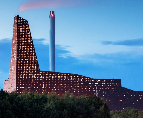 Nova elektrana u Roskildeu će spaljivati smeće iz devet lokalnih opština, kao i sa odabranih međunarodnih lokacija kako bi generisala električnu energiju i toplotu. Jedinstvena fasada zgrade je napravljena od dva različita sloja - klimatske barijere i spoljašnje kože napravljene od izbušenog aluminijuma.