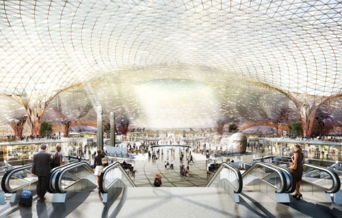 Arhitekte su ušuškale servisne sisteme ispod aerodroma tako da cevi i kanali ne bi pokvarili izgled ogromnog svoda krova. Kako bi smanjili zavisnost od fosilnih goriva, aerodrom će maksimizirati prodor prirodne svetlosti i biće opremljen sa fotonaponskim sistemima i sistemom sakupljanja kišnice. Principi rasipne ventilacije će biti usvojeni u projetku, tako da će vrlo malo ili nimalo dodatno grejanja ili hlađenja biti potrebno.