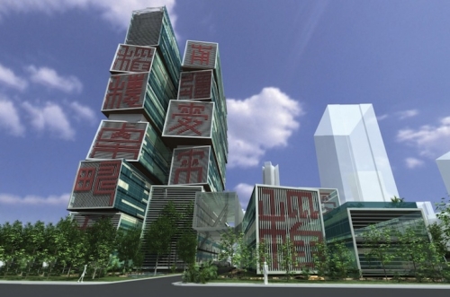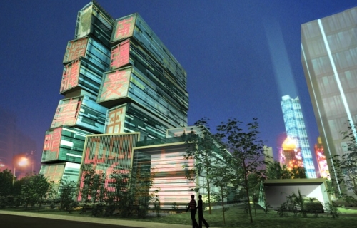 Zgrada agencije je projektovana tako da podseća na naslagane iskelesane kamene pečatnjake, gde je svaki volumen ukrašen sa gigantskim osvetljenim kineskim znakom koji se odnose na poljoprivredno zemljište, šumarstvo, bunare i bašte.