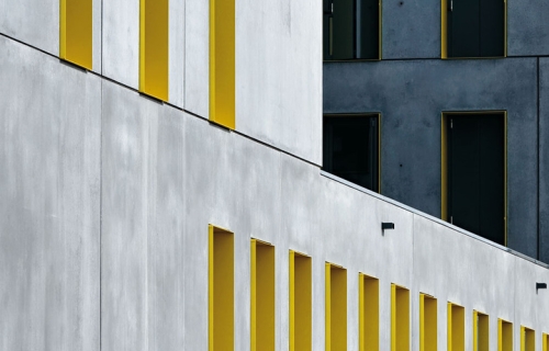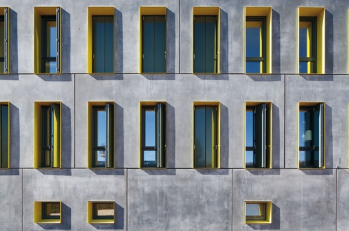 Zaglađivanje oplate je značilo da potporni zidovi u okviru fasadnih elemenata koji podsećaju na češljeve nisu evidentni. Uski spojevi su zatvoreni sa komprimovanim trakama. Unutrašnje ivice oplate su jednostavno poprskane sa silikonom, što je omogućilo stvaranje preciznih, blago zakrivljenih betonskih grebena.