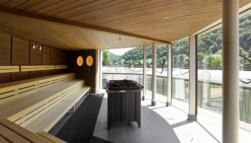 Unutar kompaktne strukture, posetioci se mogu opustiti u jednoj od dve finske saune sa prozorima od poda do plafona, prostorijom za opuštanje sa barom i terasom za sunčanje koja pruža predivne poglede na okolni pejzaž reke.