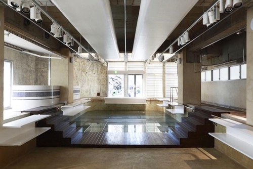 „Pool Aoyama“ prodaje nautičku odeću i pribor u obnovljenom bazenu za plivanje smeštenom unutar stare stambene zgrade. Prodavnica je smeštena u trendi šoping oblasti Aojama, i u vlasništvu je modnog dizajnera Horišija Fuđivare. Obnovljeni lokal poseduje staklenu platformu koja podseća na vodu koja je nekada pokrivala pod bazena.