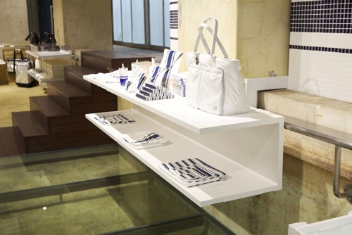 Arhitekte su se odlučile za očuvanje izgleda i osećaja bazena tako što su uradili jedno suptilno prilagođavanje prostora putem staklene platforme. Ispunjen sa mekom prirodnom svetlošću, lokal prodaje odeću i pribor koji je ležerno razbacan u enterijeru.