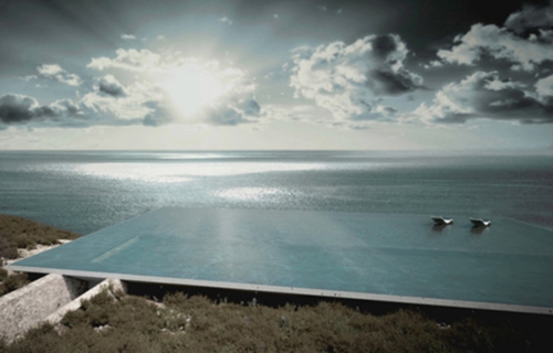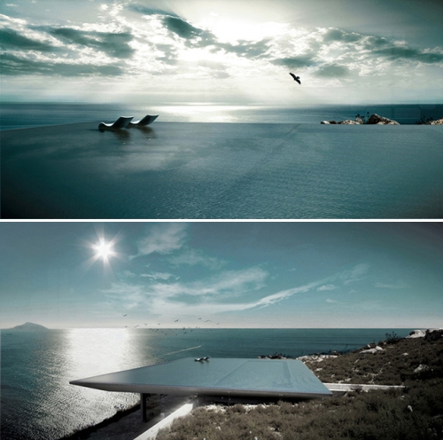 Tako su dva sprata rezidencije smeštena unutar terena koji se otvara velikom terasom koja gleda na more. Posebni vizuelni ugođaj je ugrađen u funkciji krova gde se nalazi veliki beskrajni bazen čija se površina održava poput morske.