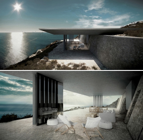 Rezidencija „Miraž“ (Mirage) na grčkom ostrvu Tinos u potpunosti se stapa s okružujućim prirodom, skrivajući tako stanare od neželjenih pogleda. Glavni zahtev naručioca ove vile bila je apsolutna tajnovitost kako ni u jednom trenutku ne bi bilo vidljivo ko se u njoj nalazi.